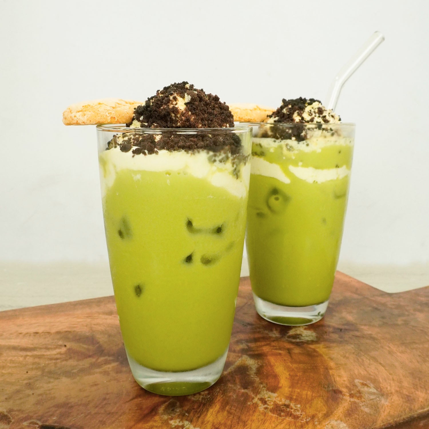 - In a glass, add ice and pour in the Daily Blends Matcha Milk Tea Flavor Mix, prepared according to packaging instructions.
