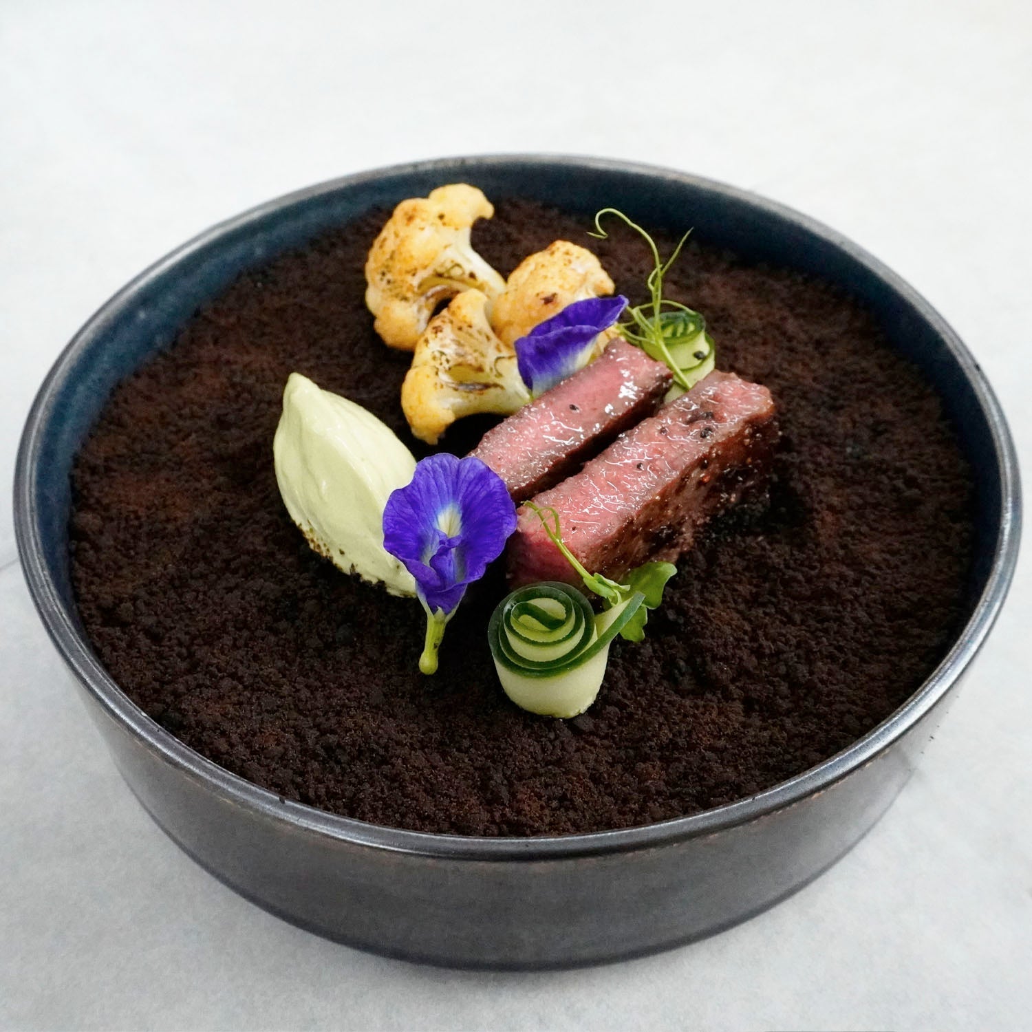 5. Side Satsuma Gyu with cauliflower and a scoop of matcha mousse.